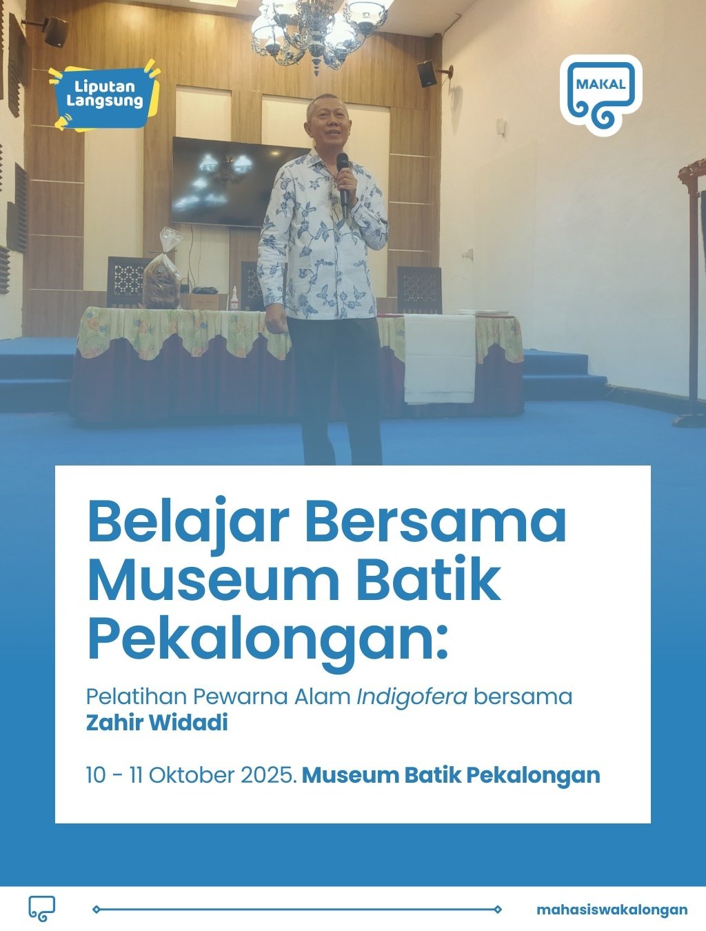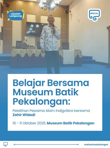 Pelatihan ini tidak hanya sekadar teori, tetapi merupakan aksi nyata dari Museum Batik Pekalongan untuk menjawab tantangan pencemaran sungai akibat limbah batik dan pencucian jeans yang selama ini menjadi momok. Dengan semangat "Batik Membumi, Generasi Peduli", peserta diajak untuk kembali ke akar budaya dengan memanfaatkan tanaman Indigofera sebagai sumber warna biru alami yang indah, tidak beracun dan ramah lingkungan.