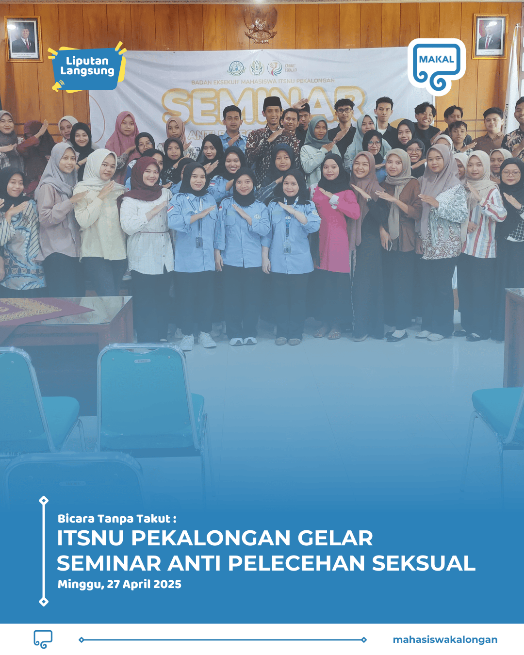 Pekalongan, 27 April 2025 – BEM ITSNU Pekalongan menggelar Seminar Anti Pelecehan Seksual dengan tema “Bicara Tanpa Takut, Lawan Pelecehan Seksual”. Acara ini menjadi langkah nyata kampus ITSNU Pekalongan dalam membangun kesadaran kolektif untuk mencegah dan menanggapi kekerasan seksual, baik di lingkungan kampus, kerja, maupun masyarakat.