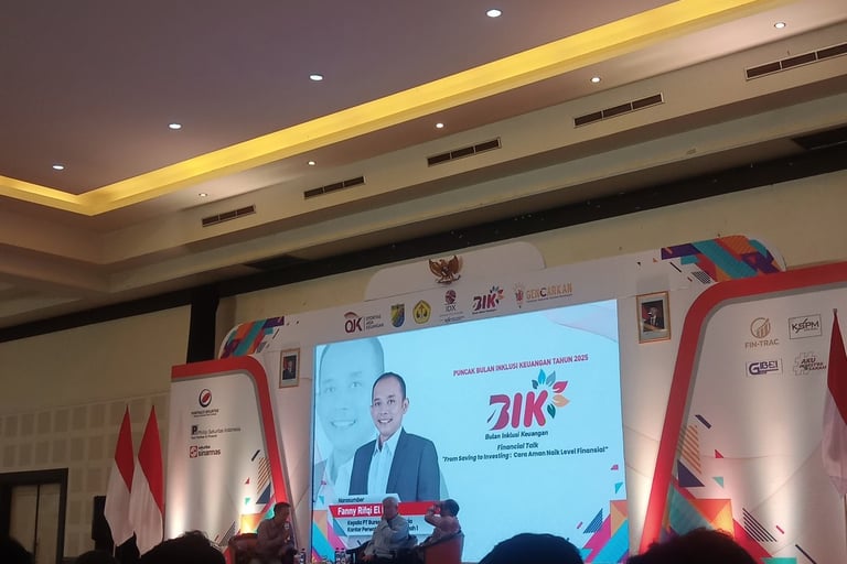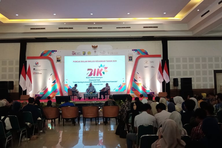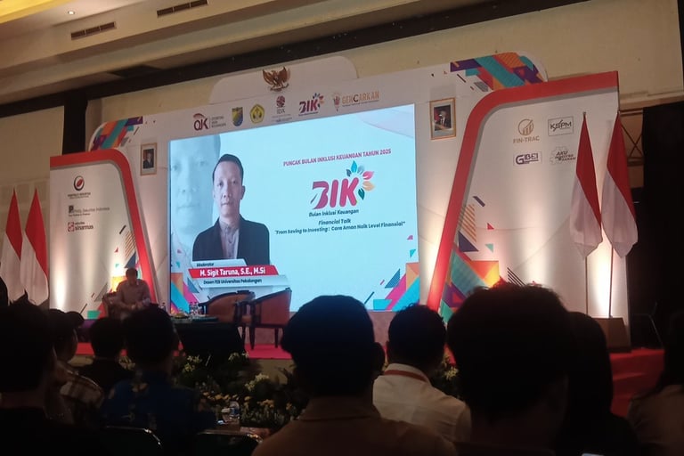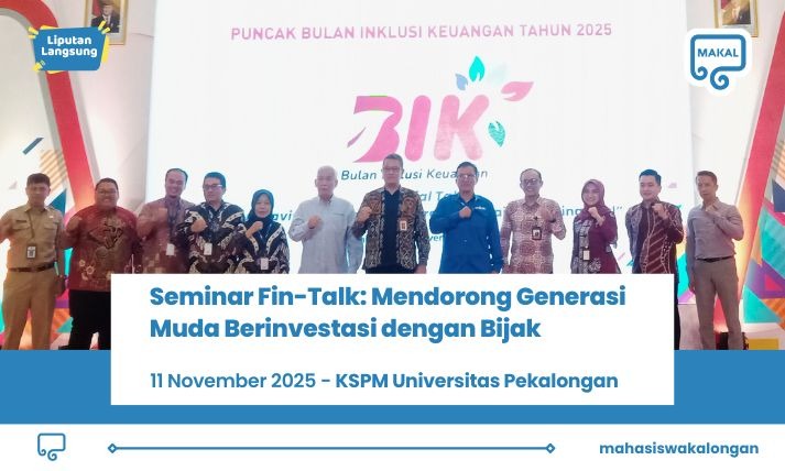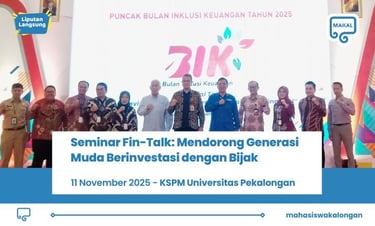 Kelompok Studi Pasar Modal (KSPM) Universitas Pekalongan bekerja sama dengan Otoritas Jasa Keuangan (OJK) Tegal dan Bursa Efek Indonesia (IDX) Semarang menggelar Seminar Nasional Fin-Talk bertajuk "From Saving to Investing: Cara Aman Naik Level Finansial" pada Selasa (11/11/25) di Djunaid Convention Center, Pekalongan.